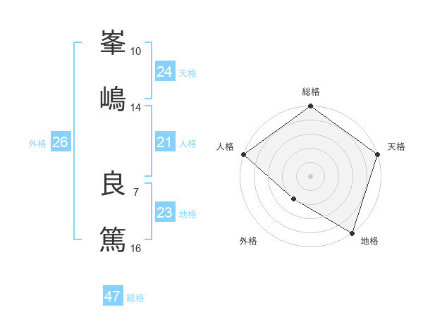 峯嶋 良篤さんを姓名の画数から五運を鑑定