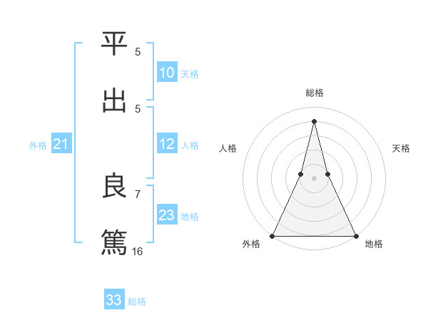 平出 良篤さんの総格は33画の4点!