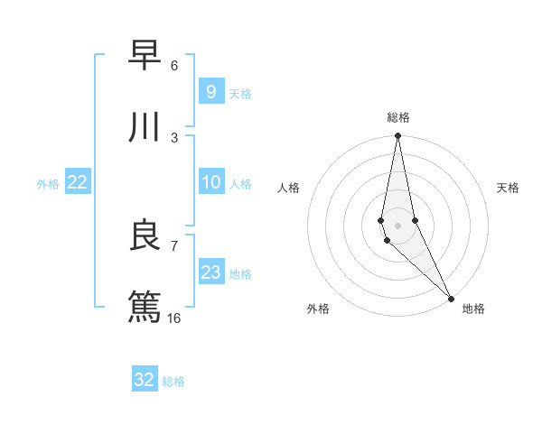 早川 良篤さんの総格は32画の5点!