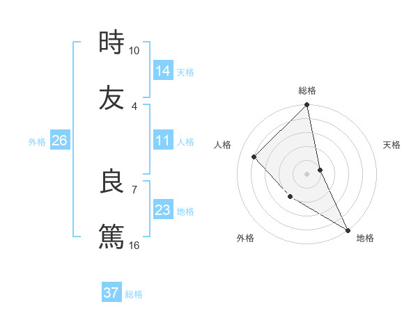 時友 良篤さんの総格は37画の5点!