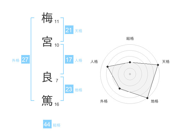 梅宮 良篤さんの総格は44画の2点!