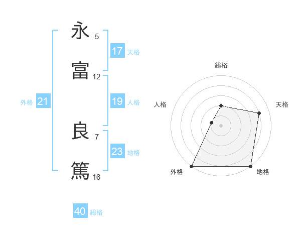 永富 良篤さんの総格は40画の2点!
