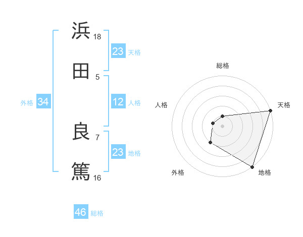 浜田 良篤さんの天格は23画の5点!