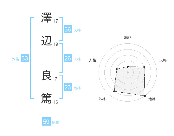 澤辺 良篤さんの総格は59画の1点!