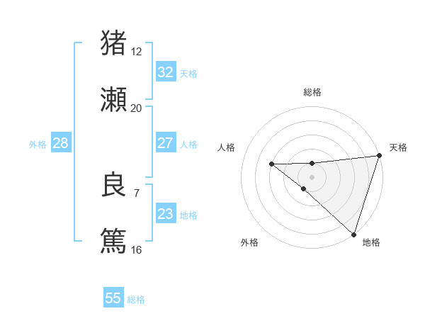 猪瀬 良篤さんの総格は55画の1点!