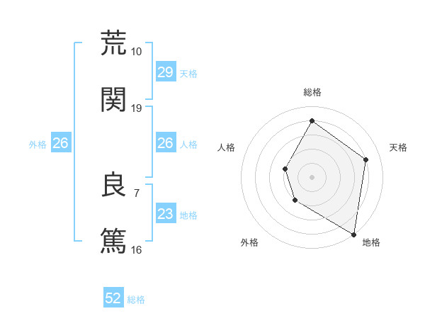 荒関 良篤さんを姓名の画数から五運を鑑定