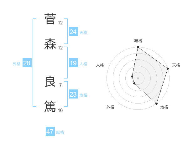 菅森 良篤さんの総格は47画の5点!