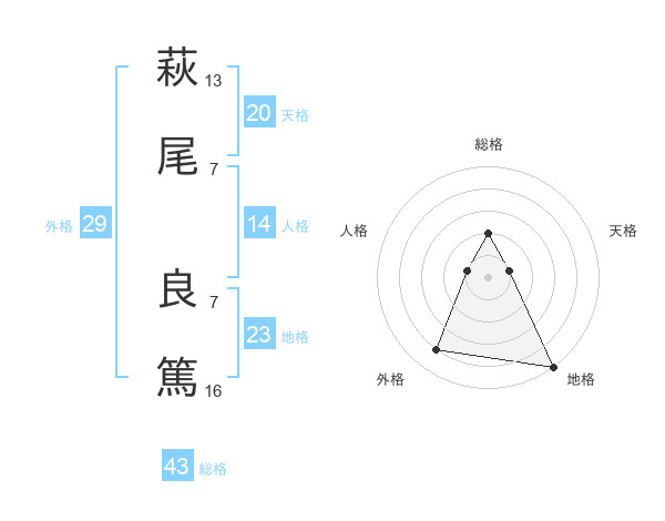 萩尾 良篤さんを姓名の画数から五運を鑑定