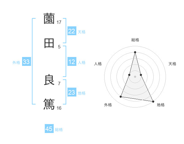薗田 良篤さんを姓名の画数から五運を鑑定