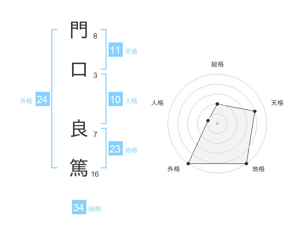門口 良篤さんの総格は34画の2点!