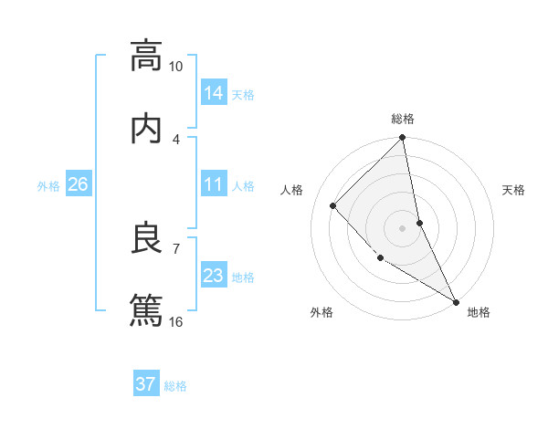 高内 良篤さんの総格は37画の5点!