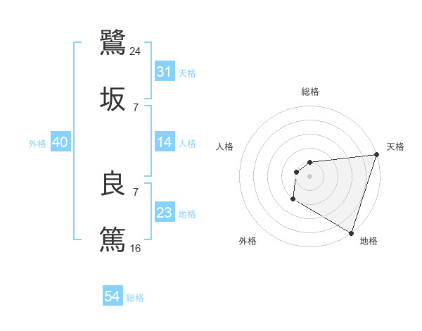 鷺坂 良篤さんの天格は31画の5点!
