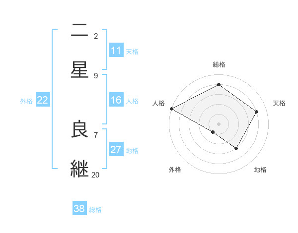 二星 良継さんの総格は38画の4点!