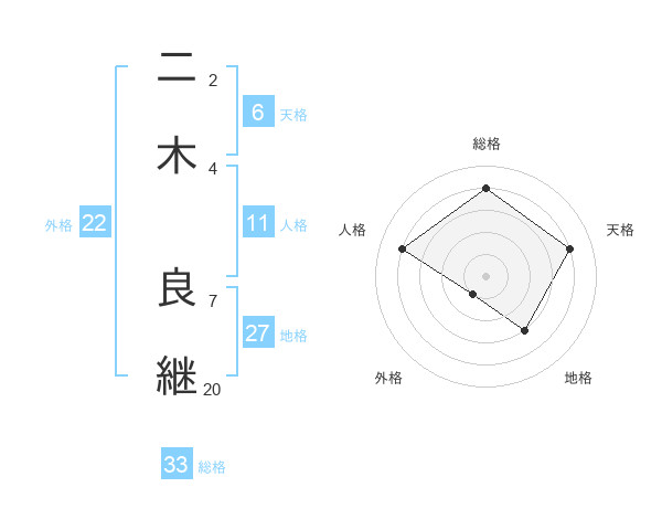 二木 良継さんの総格は33画の4点!