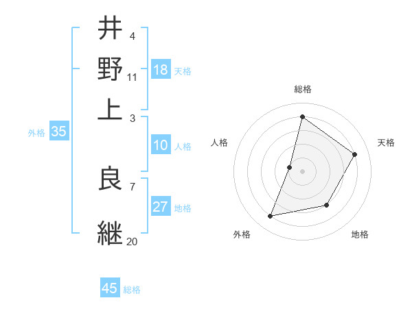占い結果は姓名判断である以上、良い場合も悪い場合もありますが、決してお名前を誹謗中傷するものでなく、画数の自動計算によって得られたものです。また、本サイトの検索によって得られた鑑定結果で、第三者を誹謗中傷したり名誉を棄損するような行為を禁じます。