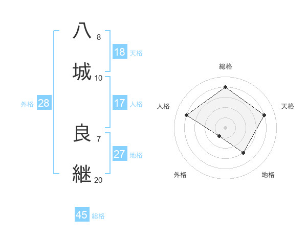 八城 良継さんの総格は45画の4点!