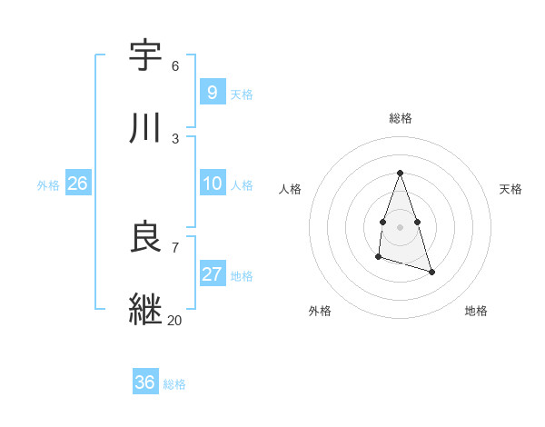 宇川 良継さんの総格は36画の3点!