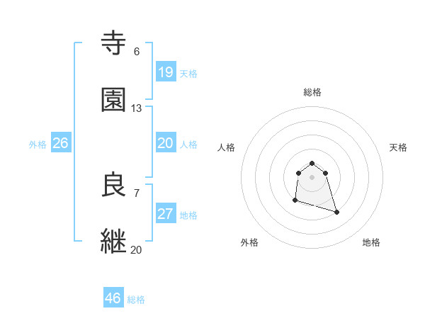 寺園 良継さんの天格は19画の1点!