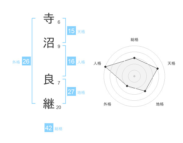 寺沼 良継さんの総格は42画の3点!