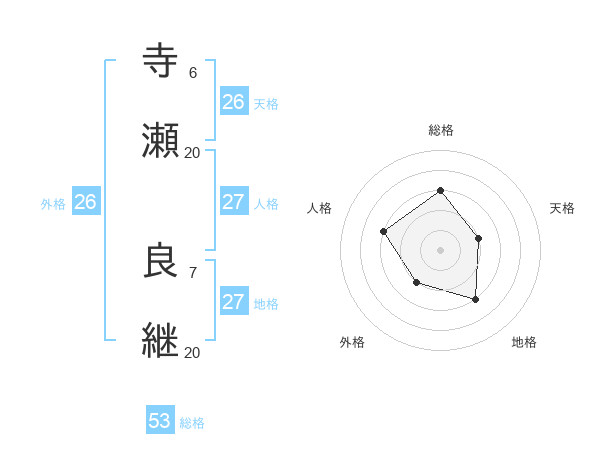 寺瀬 良継さんの総格は53画の3点!