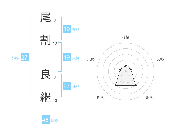 尾割 良継さんの外格は27画の3点!