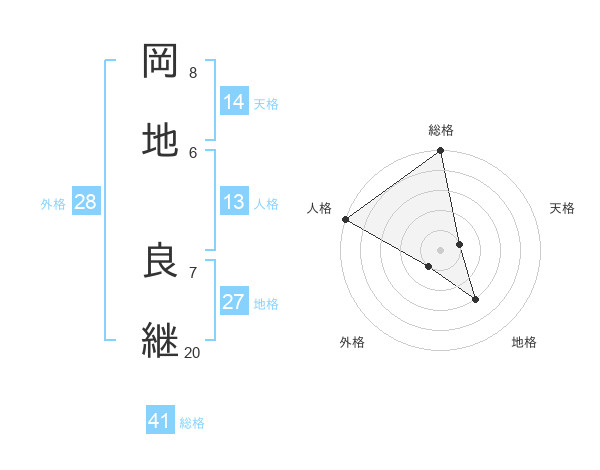 岡地 良継さんの総格は41画の5点!