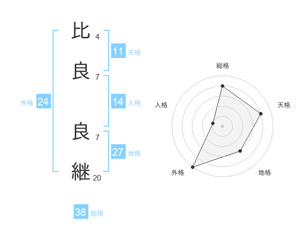 比良 良継さんの総格は38画の4点!