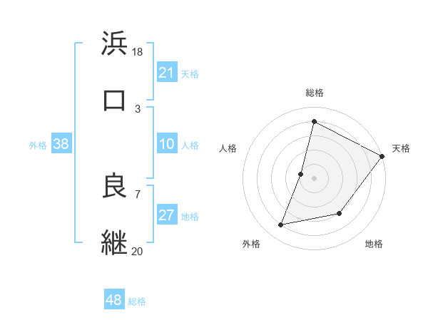 浜口 良継さんの天格は21画の5点!