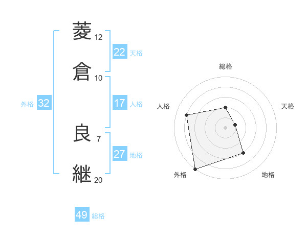 菱倉 良継さんの総格は49画の2点!