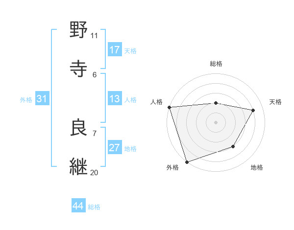 野寺 良継さんの天格は17画の4点!