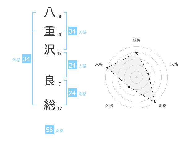 八重沢 良総さんを姓名の画数から五運を鑑定