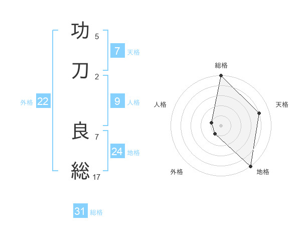 功刀 良総さんの総格は31画の5点!