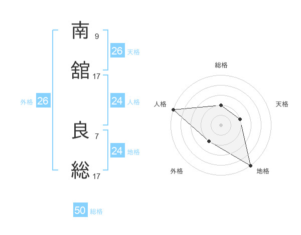 南舘 良総さんの地格は24画の5点!