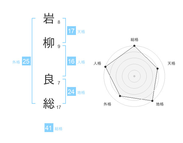 岩柳 良総さんを姓名の画数から五運を鑑定