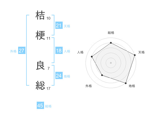桔梗 良総さんを姓名の画数から五運を鑑定