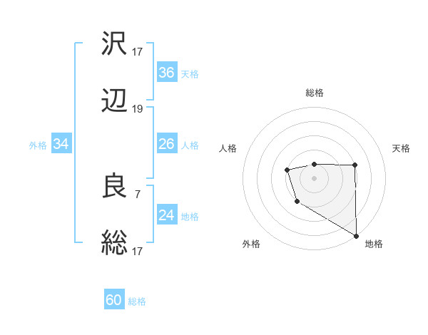 沢辺 良総さんを姓名の画数から五運を鑑定