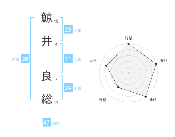 鯨井 良総さんを姓名の画数から五運を鑑定