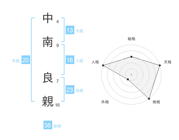 中南 良親さんの天格は13画の5点!