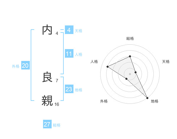 内 良親さんの総格は27画の3点!
