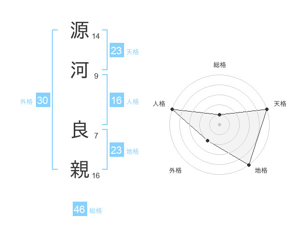 源河 良親さんの天格は23画の5点!