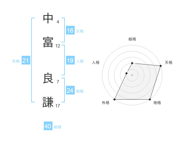 中富 良謙さんの外格は21画の5点!