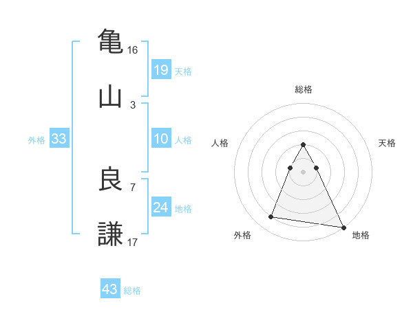 亀山 良謙さんの総格は43画の2点!