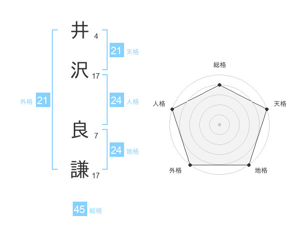 井沢 良謙さんの天格は21画の5点!