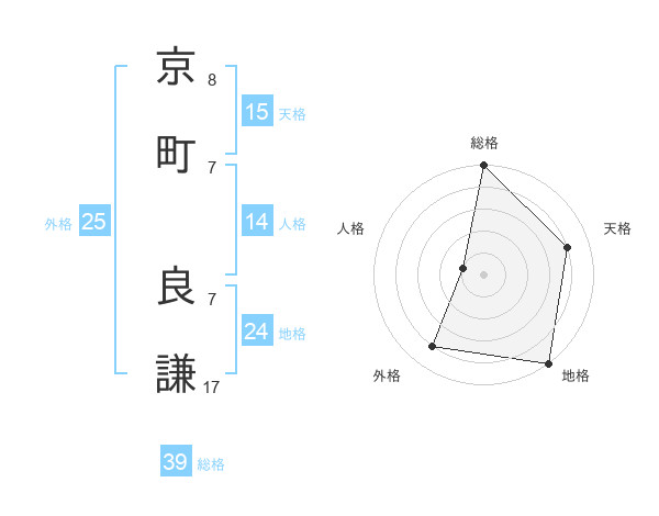 京町 良謙さんの総格は39画の5点!