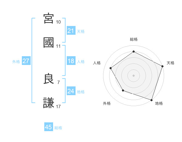 宮國 良謙さんの天格は21画の5点!