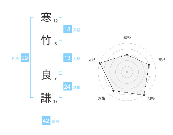 寒竹 良謙さんの総格は42画の3点!