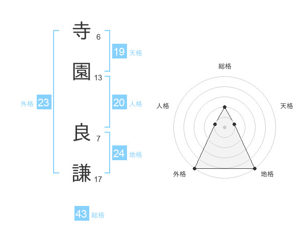 寺園 良謙さんの外格は23画の5点!