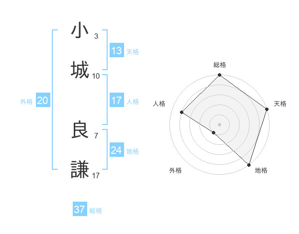小城 良謙さんの天格は13画の5点!