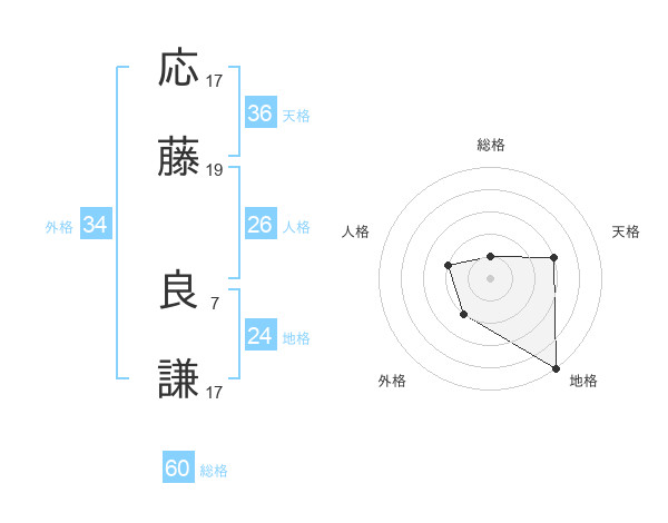 応藤 良謙さんを姓名の画数から五運を鑑定