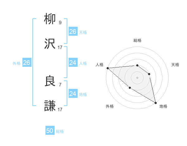 柳沢 良謙さんの総格は50画の2点!